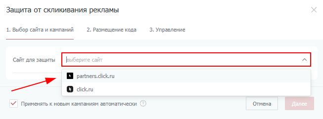 Важно: для отображения сайта в списке, по нему уже должны быть показы и переходы. Вновь добавленные сайты, по которым не запущена реклама, отображаться не будут.