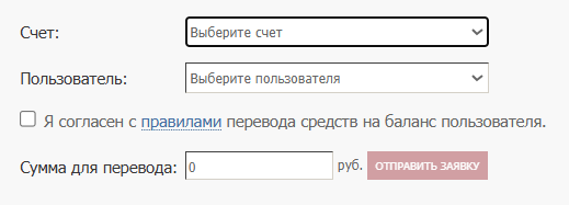 3. Выберите счет для перевода и пользовательский аккаунт, на который будут переведены средства.