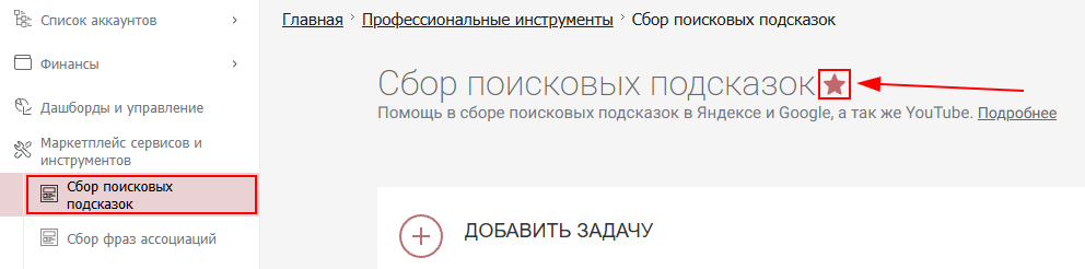 4. Находясь на странице инструмента нажмите на значок «⭐️» рядом с названием, чтобы закрепить его в панели слева для быстрого доступа;
