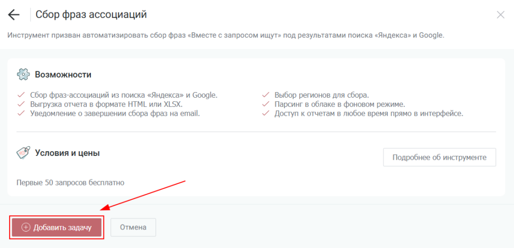 Эти фразы — очень ценный источник для расширения семантического ядра, используйте их при работе с семантикой. Инструмент «Сбор фраз ассоциаций» поможет с легкостью собрать их.