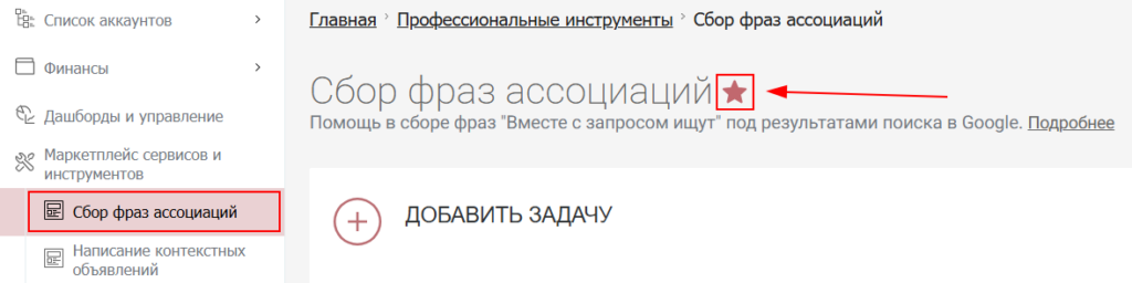 4. Находясь на странице инструмента нажмите на значок «⭐️» рядом с названием, чтобы закрепить его в панели слева для быстрого доступа;