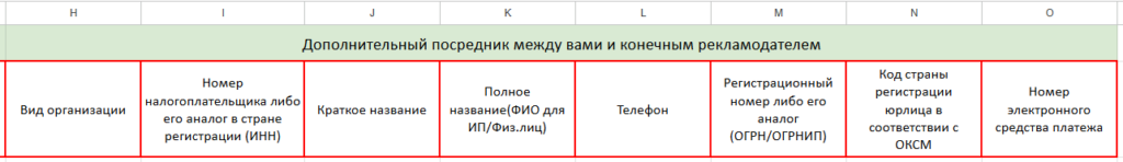 Группы столбцов «Дополнительный посредник между вами и конечным рекламодателем» и «Конечный рекламодатель»