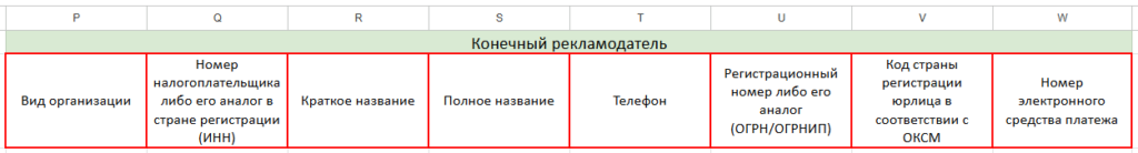 Группа столбцов «Договор между посредником и конечным рекламодателем»