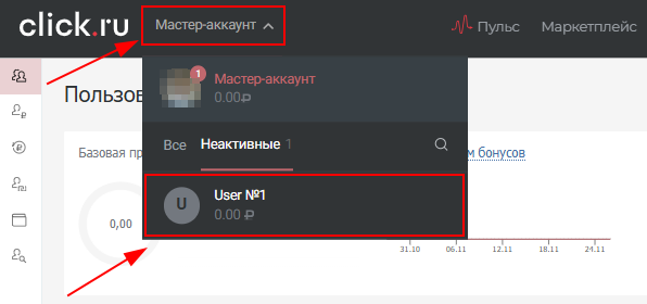 Чтобы проверить возможный заработок партнерской программы, перейдите в мастер-аккаунт и нажмите на баланс: