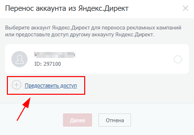 Если ранее вы уже подключали аккаунты Я.Директ для демонстрации, в появившемся окне нажмите «Предоставить доступ».