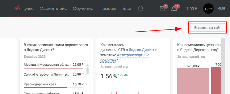 Для специалистов по маркетингу и фрилансеров, которые ведут блоги, мы сделали подарок — «Пульс Click.ru» можно встроить на свой сайт.