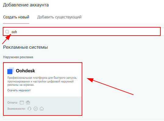 2. Используя поле для поиска найдите и выберите площадку «Oohdesk».
