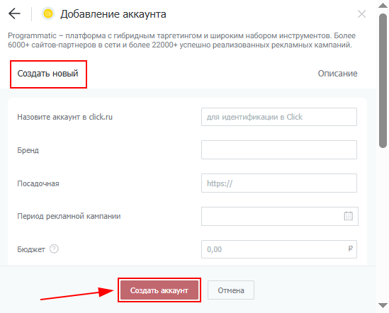 3. Назовите новый аккаунт и заполните необходимые поля, затем нажмите на кнопку «Создать аккаунт».
