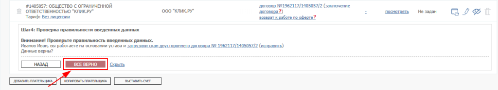 Шаг 4. Проверьте загруженные данные и, если всё правильно, нажмите кнопку «Все верно».