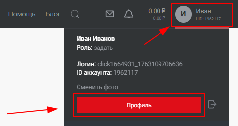 Для того, чтобы перейти от работы по договору-оферте к работе по двустороннему договору, нажмите на кнопку «Профиль» в правом верхнем углу: