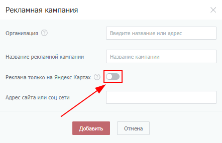 Чтобы создать кампанию с приоритетным размещением, включите опцию «Реклама только на Яндекс Картах».