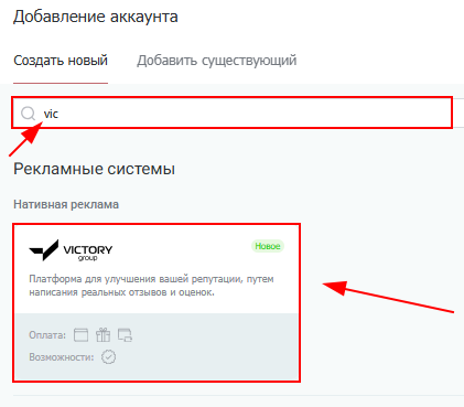 2. Используя поле для поиска найдите «Victory» и выберите площадку.