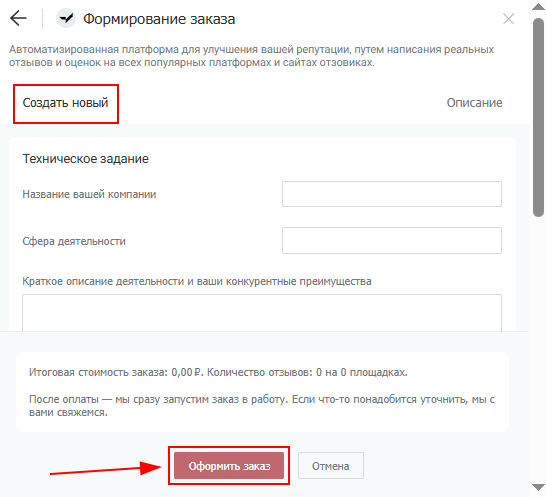Важно! После оформления и оплаты заказа редактировать ТЗ или набор площадок — нельзя. Также нельзя пополнить. Можно только остановить автопополнение и добавить новый аккаунт с новыми деталями заказа.