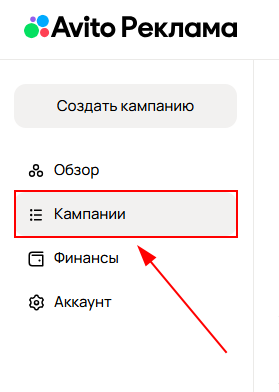 1. Находясь на главной странице кабинета перейдите в раздел «Кампании» через панель слева;