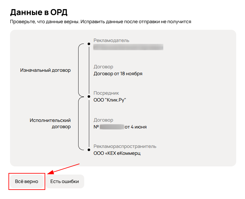 Важно! Если у вас схема с посредниками, через которых проходит рекламный бюджет, сообщите об этом нашей службе поддержки, и мы укажем все необходимые данные.