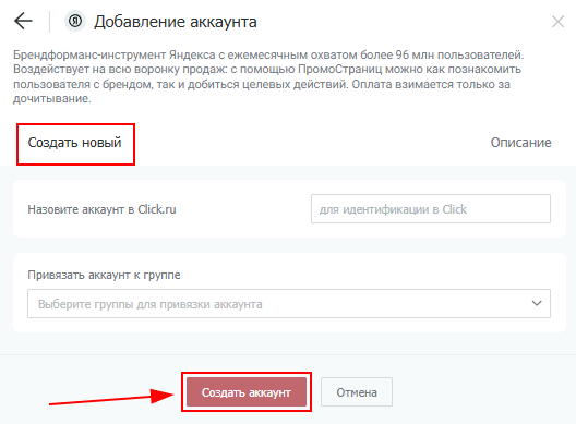3. Назовите новый кабинет и нажмите на кнопку «Создать аккаунт».