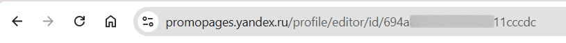 Формат ссылки: https://promopages.yandex.ru/profile/editor/id/ххххххххх